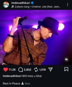 গায়ক জুবিন গর্গ-এর মৃত্যুতে শোক প্রকাশ করেছেন দেব।