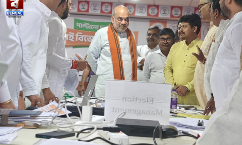 সল্টলেকে বিজেপির কার্যালয়ে ৪ ঘণ্টারও বেশি থেকে নির্বাচন পর্যবেক্ষণ করলেন অমিত শাহ
