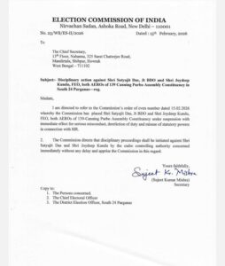 •ক্যানিং পূর্ব – সত্যজিৎ দাস ও জয়দীপ কুণ্ডু (এই দুই আধিকারিকের ক্ষেত্রেই পুনরায় নির্দেশ)