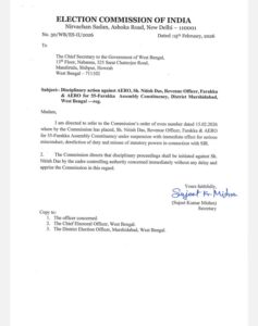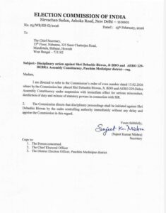 রাজ্যের ছয়টি বিধানসভা কেন্দ্রের মোট সাতজন এ ই আর ও -র বিরুদ্ধে ব্যবস্থা নেওয়ার কথা বলা হয়েছে। তাঁরা হলেন—