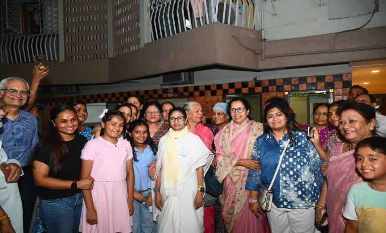 ভবানীপুরের বহুতলে ‘ঘরের মেয়ে’র মেজাজে মমতা, সেলফির জন্য ছেঁকে ধরল মহিলা-খুদেরা