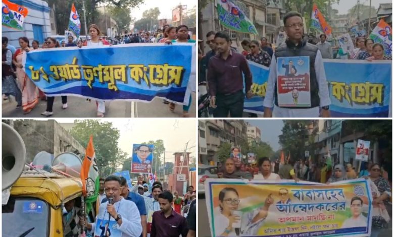 Truth Of Bengal: ডক্টর ভীমরাও আম্বেদকর সম্পর্কে অশালীন মন্তব্য করেছেন কেন্দ্রীয় স্বরাষ্ট্রমন্ত্রী। সংবিধান প্রণেতাকে অসম্মান করা হয়েছে, অপমান করা হয়েছে। অমিত শাহের সেই বিতর্কিত মন্তব্যের প্রতিবাদ এবার রাজ্যের সর্বত্র। তৃণমূল সুপ্রিমো মমতা বন্দ্যোপাধ্যায়ের নির্দেশে কলকাতা থেকে জেলা সর্বত্রই গর্জে উঠল তৃণমূলের নেতাকর্মীরা। সোমবার রেড রোডে ডঃ বি আর আম্বেদকরের মূর্তিতে পুষ্পার্ঘ্য অর্পণ করে শ্রদ্ধা জ্ঞাপন করেন তৃণমূলের রাজ্য সভাপতি সুব্রত বক্সী। সঙ্গে ছিলেন তৃণমূল মুখপাত্র তথা রাজ্য সহ-সভাপতি জয়প্রকাশ মজুমদার সহ অন্যান্যরা। কেন্দ্রীয় স্বরাষ্ট্রমন্ত্রীর ওই মন্তব্যের প্রেক্ষিতে কড়া ভাষায় সমালোচনা করেন তৃণমূল নেতারা। কেন্দ্রের বিজেপি নেতাদের এহেন আচরণের তীব্র নিন্দা জানান।