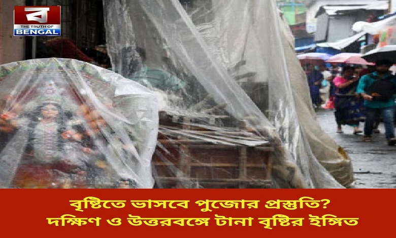Truth Of Bengal: দুর্গাপুজো  দুয়ারে কড়া নাড়ছে। শহর থেকে মফস্বল—চারদিকে উৎসবের আমেজ, ঢাকের বোল আর বাজারে শেষ মুহূর্তের ভিড় জমিয়ে তুলেছে উৎসবের রঙ। তবে এই আনন্দের আবহেই ছায়া ফেলেছে আবহাওয়ার আশঙ্কা। হাওয়া অফিস সূত্রে জানা গেছে, আসন্ন সোমবার থেকে দক্ষিণবঙ্গে শুরু হতে পারে টানা বৃষ্টি, যা চলতে পারে অন্তত ছয় দিন ধরে। কলকাতা-সহ একাধিক জেলায় হালকা থেকে মাঝারি বৃষ্টির সম্ভাবনা রয়েছে, বজ্রবিদ্যুৎ ও ঘণ্টায় ৩০-৪০ কিমি বেগে ঝোড়ো হাওয়ার সম্ভাবনাও উড়িয়ে দেওয়া হয়নি। বুধবার ও বৃহস্পতিবার বৃষ্টির তীব্রতা কিছুটা বাড়তে পারে বলে জানানো হয়েছে। ফলে দক্ষিণবঙ্গের একাধিক জেলায় জারি করা হয়েছে হলুদ সতর্কতা।(Bengal Weather)