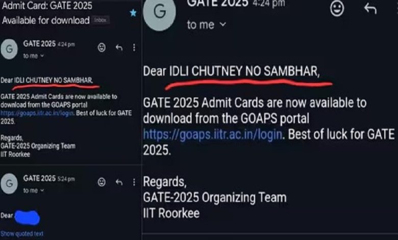 'Dear Idli, Chutney', what is this written on the GATE mail!