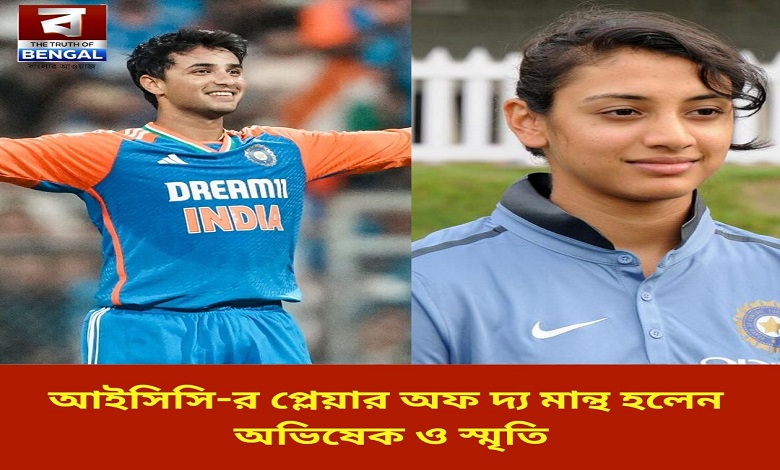 আইসিসি-র প্লেয়ার অফ দ্য মান্থ হলেন অভিষেক ও স্মৃতি