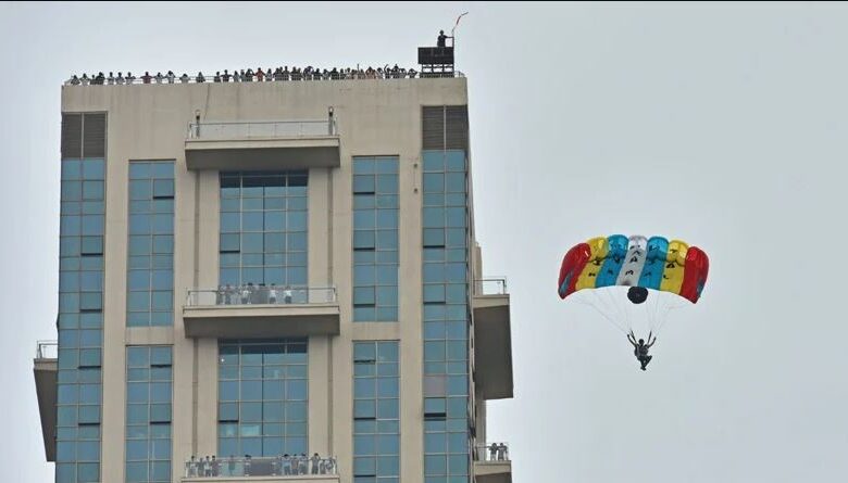 ডুরান্ড কাপ নিয়ে উদ্বোধনী অনুষ্ঠানে বেস জাম্পিং করলেন সেনাকর্মী