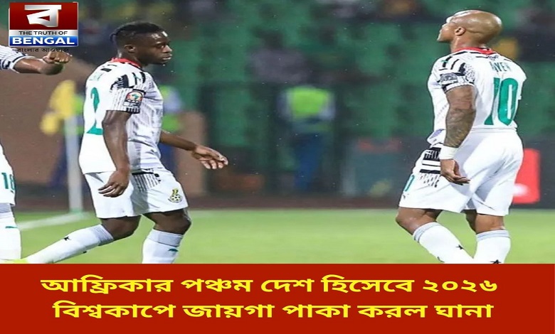 Truth Of Bengal: আগামী ২০২৬ সালে আমেরিকা, কানাডা ও মেক্সিকোতে অনুষ্ঠিত হবে ফুটবলের বিশ্বকাপ। সেই বিশ্বকাপের আসরে আফ্রিকার পঞ্চম দেশ হিসেবে বিশ্বকাপের মঞ্চে জায়গা পাকা করে ফেলল ঘানা। এর আগে এই মহাদেশ থেকে আগেই বিশ্বকাপের মূল মঞ্চে খেলার জন্য টিকিট আদায় করে নিয়েছিল মিসর, আলজেরিয়া, মরোক্কো ও তিউনেসিয়া। তবে আগের দেশগুলি উত্তর আফ্রিকার হলেও পশ্চিম আফ্রিকা থেকে একমাত্র ঘানাই আদায় করে নিয়েছে আগামী বিশ্বকাপের মূল মঞ্চে খেলার।
