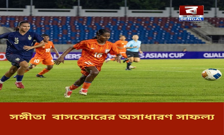 Truth of Bengal: সুদীপ্ত ভট্টাচার্য: শিল্পাঞ্চল কল্যাণী ও তাঁর পাশ্ববর্তী অঞ্চল থেকেই একটা সময় কলকাতা ময়দানে উঠে এসেছিলেন একঝাঁক প্রতিশ্রুতিমান ফুটবলার। সেই তালিকায় ছিলেন দেবজিৎ ঘোষ, সুরজিৎ বসু, সুমন দত্ত, বিজয় বাসফোর-রা। এবার এদের নামের পাশে আরও একজনের নাম শোভা পাবে। তিনি হলেন বর্তমান ভারতীয় মহিলা ফুটবল দলের অন্যতম সদস্য সঙ্গীতা বাসফোর। গত শনিবার থাইল্যান্ডের বিপক্ষে এএফসি কোয়ালিফায়ারের ম্যাচে জাতীয় দলের জার্সি গায়ে দুরন্ত দুটি গোল করেছেন কল্যাণীর বঙ্গ তনয়া। যাঁর গোলেই ভারত ম্যাচ জিতে এই প্রথম এএফসি-র মূল পর্বে খেলার যোগ্যতা অর্জন করেছে। সঙ্গীতার (Sangita Basfore) এই অভাবনীয় পারফরম্যান্স অন্য সকলের মত আনন্দে আত্মহারা হয়ে উঠেছেন ময়দানের প্রাক্তন ফুটবলার বিজয় বাসফোর।