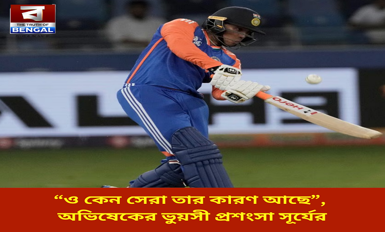 Truth Of Bengal: চলতি এশিয়া কাপে বড় জয় দিয়ে শুরু করেছে ভারত। প্রথম ম্যাচেই চোখের নিমেষে গুঁড়িয়ে দিয়েছে সংযুক্ত আরব আমিরশাহীকে। ৯ উইকেটে ম্যাচ জিতেছেন সূর্যকুমার যাদব ও তাঁর বাহিনী। ম্যাচের সেরার পুরস্কার কুলদীপ যাদবকে দেওয়া হলেও স্টেডিয়ামে উপস্থিত দর্শকদের দৃষ্টি বেশি আকর্ষণ করেছে দলের তরুণ ওপেনার অভিষেক শর্মার ব্যাটিং। পুরস্কার বিতরণী অনুষ্ঠানে তাঁর ভুয়সী প্রশংসা করলেন সূর্য এবং জানান কেন এই মুহূর্তে তিনি বিশ্বের এক নম্বর টি২০ ব্যাটার।(Surya Kumar yadav)