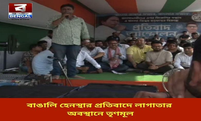 Bengali: বাঙালি হেনস্থার প্রতিবাদে লাগাতার অবস্থানে তৃণমূল