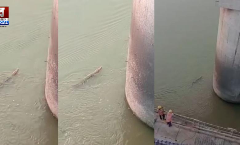 নদী থেকে উঠে লোকালয়ে অবাধ বিচরণ কুমিরের, মুহুর্তে ভাইরাল ভিডিও