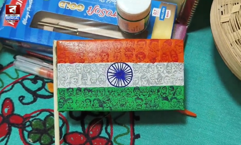 সুমন মন্ডল, পশ্চিম মেদিনীপুর: ছোট্ট একটা দেশলাই বাক্স। তার ওপর জাতীয় পতাকার রং। এর মাঝেই ফুটিয়ে তোলা হয়েছে ভারতের স্বাধীনতা…