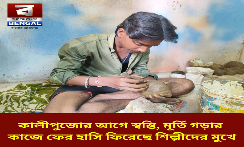 কালীপুজোর আগে স্বস্তি, মূর্তি গড়ার কাজে ফের হাসি ফিরেছে পুরুলিয়ার শিল্পীদের মুখে