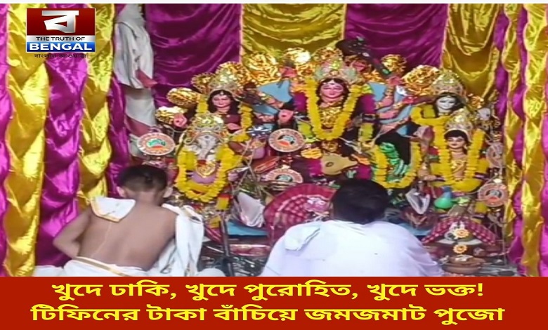 খুদে ঢাকি, খুদে পুরোহিত, খুদে ভক্ত! টিফিনের টাকা বাঁচিয়ে জমজমাট পুজো