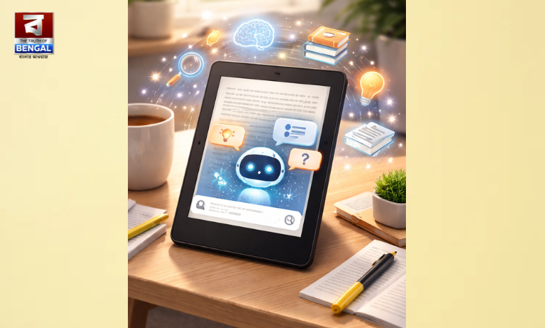 Truth of Bengal: আধুনিক জীবনযাপনের অবিচ্ছেদ্য অংশ হয়ে উঠেছে এআই বা কৃত্রিম বুদ্ধিমত্তা প্রযুক্তি। চিকিৎসা থেকে আর্থিক লেনদেন, কেনাকাটা, সবকিছুতেই আজকাল এআই প্রযুক্তির সাহায্য নেওয়া হয়ে থাকে। এবার বই পড়াতে এমনকি জটিল বিষয় বুঝতে সাহায্য করবে এআই। অ্যামাজন কিন্ডলে ‘আস্ক দিস বুক’ ফিচার চালু হয়েছে। এ বার ইন-বুক মেনুতেই মিলবে এই অপশন। এর মাধ্যমে বইয়ের সঙ্গে সরাসরি কথা বলা যাবে।