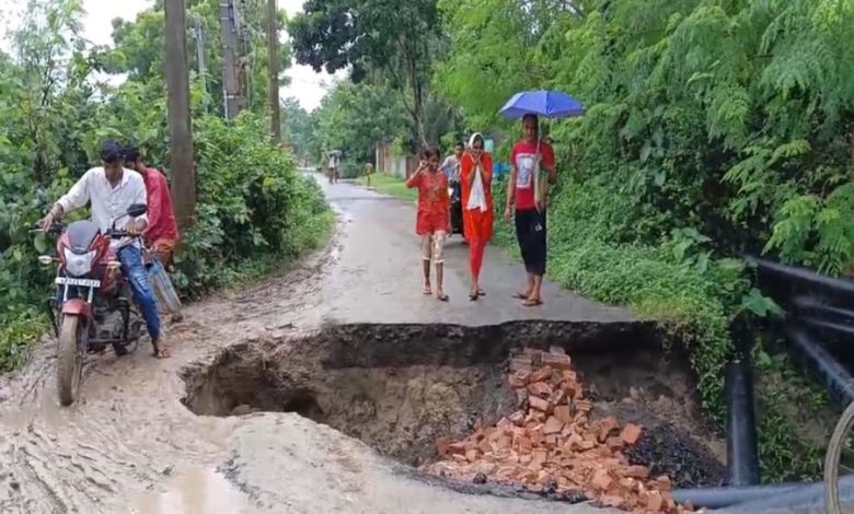 চার দিনের লাগাতার অতি ভারী বৃষ্টি, গ্রামের একমাত্র রাস্তায় বড়সড় ধস