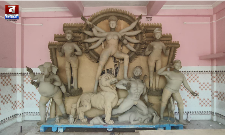 সত্যেন মহন্ত, উত্তর দিনাজপুর: একটা সময় বাংলাদেশের দিনাজপুরের রাজবাড়ির কামানের গোলা ফাটিয়ে সুচনা হত দূর্গাপূজার। সেই কামানের গগনভেদী শব্দ যখন এসে পৌছাত মানুষের কানে তখনই উত্তর দিনাজপুর জেলার ভারত -বাংলাদেশ সীমান্তবর্ত্তী গ্রাম রাধিকাপুরের উদগ্রামে শুরু হত ৫০০ বছরের বেশি পুরোন দেবী দূর্গার বোধন পর্ব। আজ শুধু সেই সব ইতিহাস। আজ রাজা নেই, নেই রাজপাট । কিন্তু আজও যা আছে তা বিভাজিত দুই বাঙ্গের সীমান্ত চিহ্নিত করনের কাটাতারের বেড়া। ভারত-বাংলাদেশ বিভাজনের পর এই রাধিকাপুরের উদগ্রামের দূর্গা মন্দিরের নামে থাকা কয়েক বিঘা জমিও চলে গিয়েছে সীমান্তের কাটাতারের বেড়ার ওপারে বর্তমানে বাংলাদেশে। আর এপারে রয়েছে দেবীর মন্দির এবং মন্দিরের সংলগ্ন কিছু কৃষি জমি সেই জমি চাষ আবাদ করে ও ভক্তদের দানের টাকায় পূজো হয় (Border Durga)।